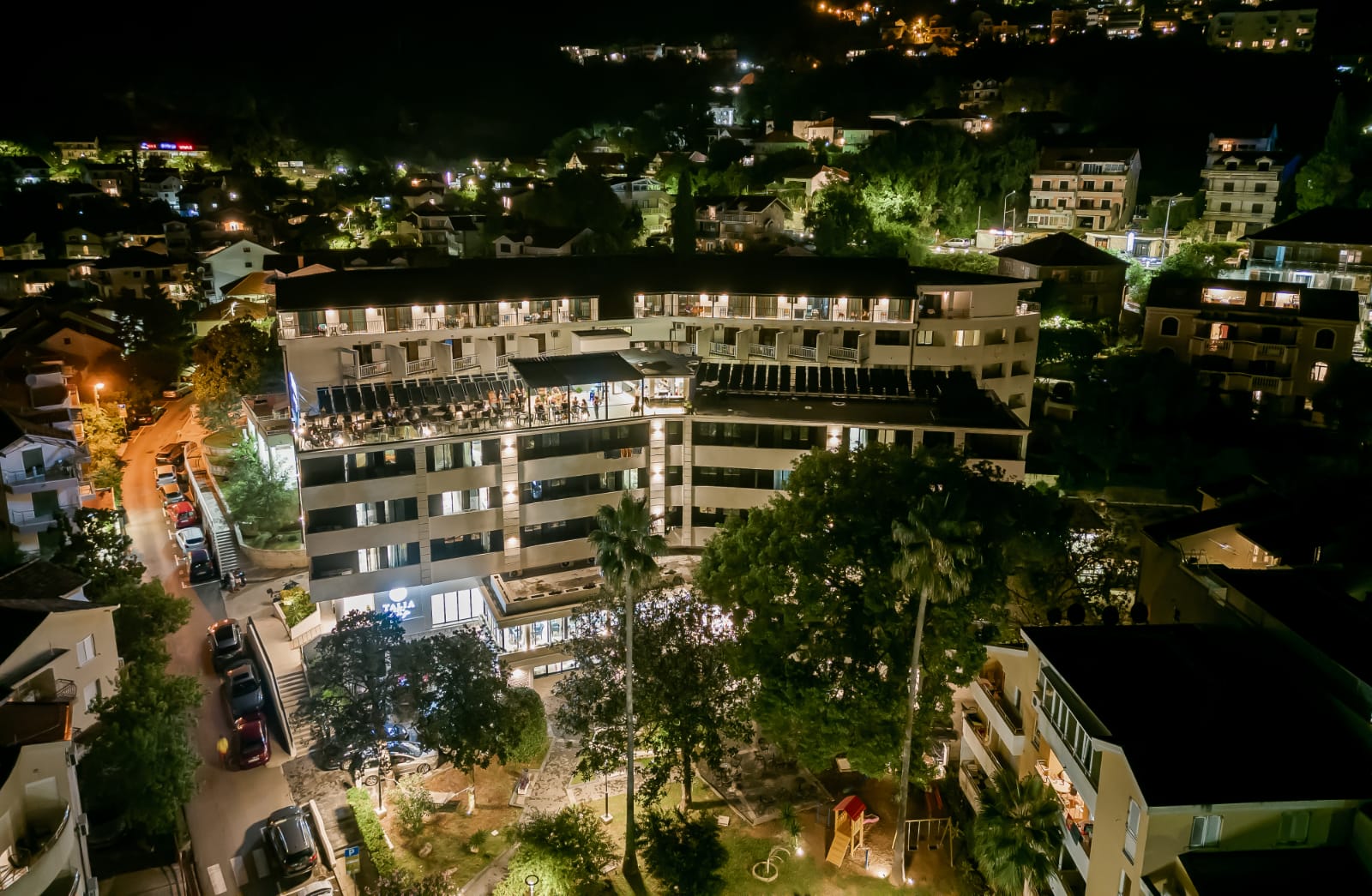 U najljepšem centralnom dijelu Herceg Novog na 50 m od mora i plaže i poznate hercegnovske promenade koja se pruža do starog grada smješten je hotel TALIA.